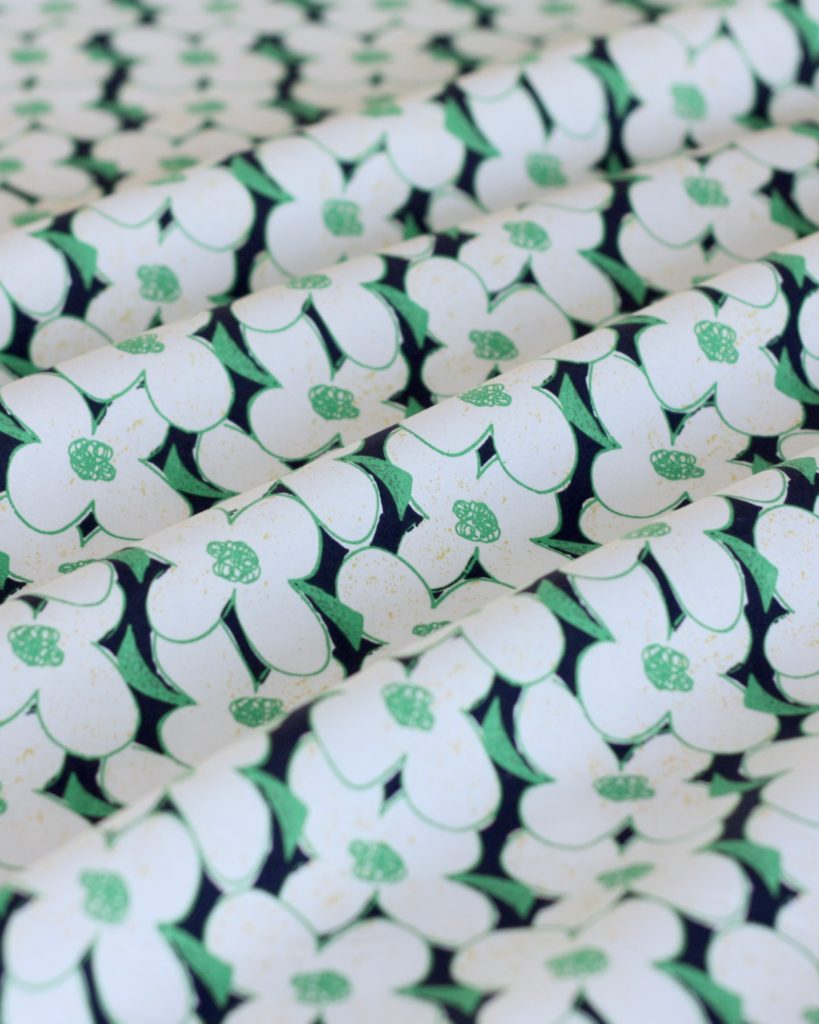 フラワー:高密度に織られたコットンにフラワープリントを施した華やかな素材